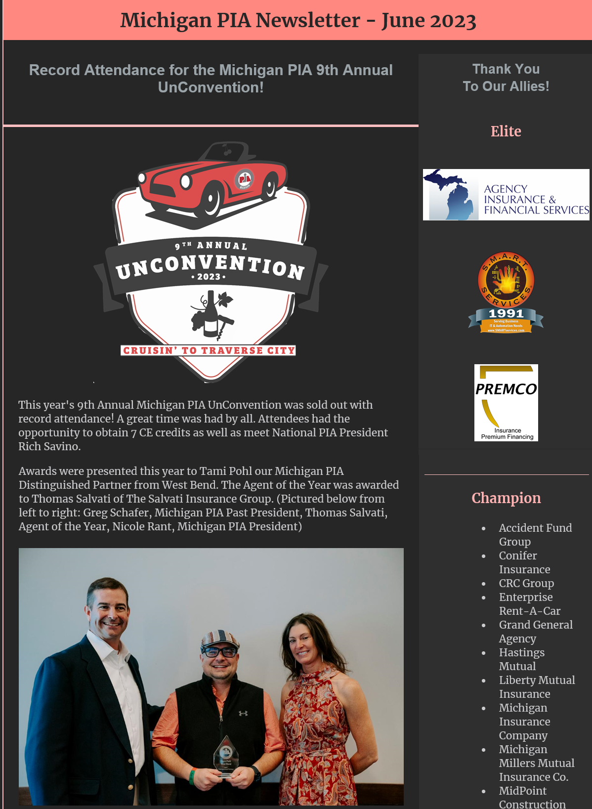 Michigan PIA awarded the Agent of the Year to Thomas Salvati of The Salvati Insurance Group.