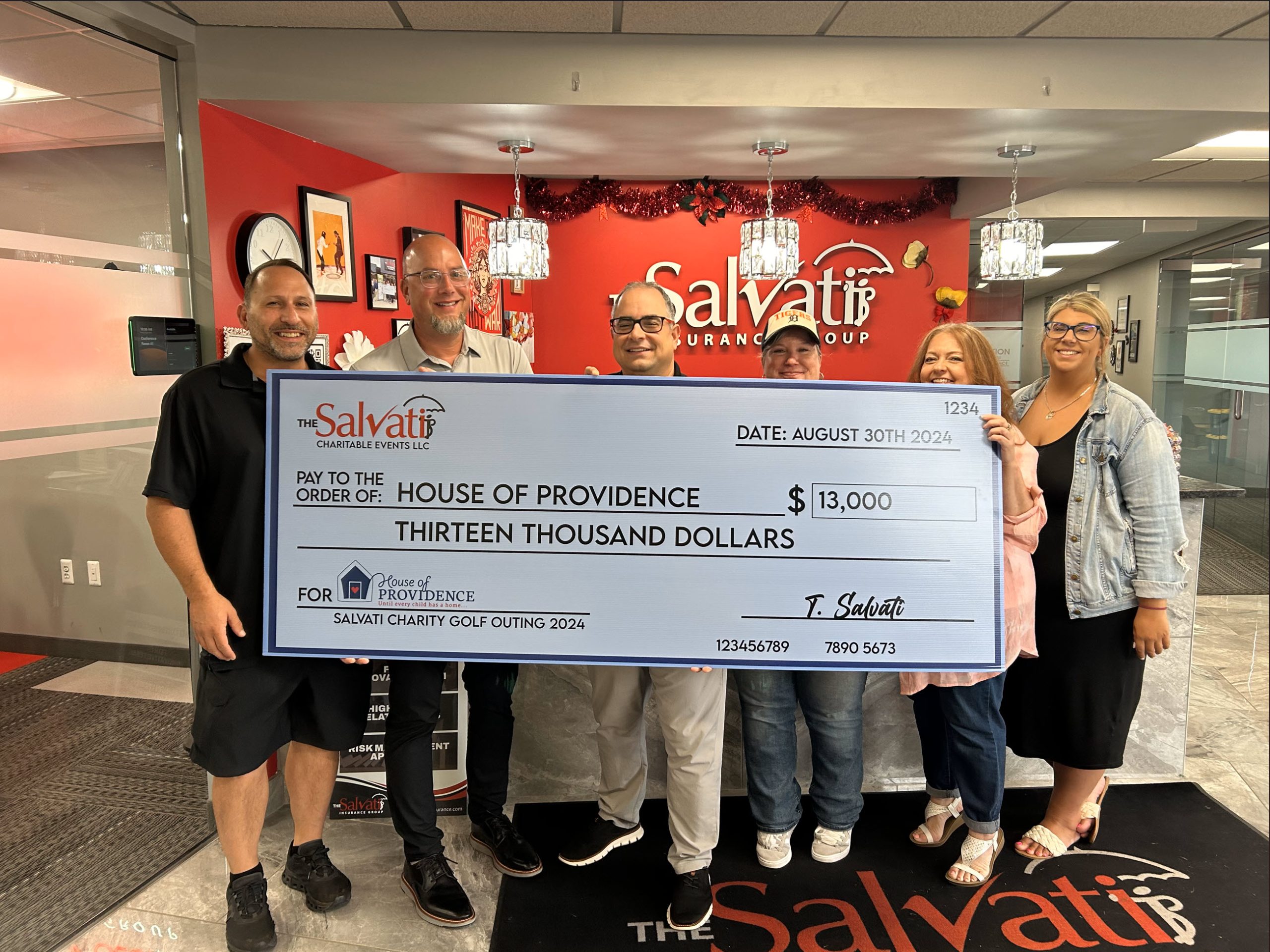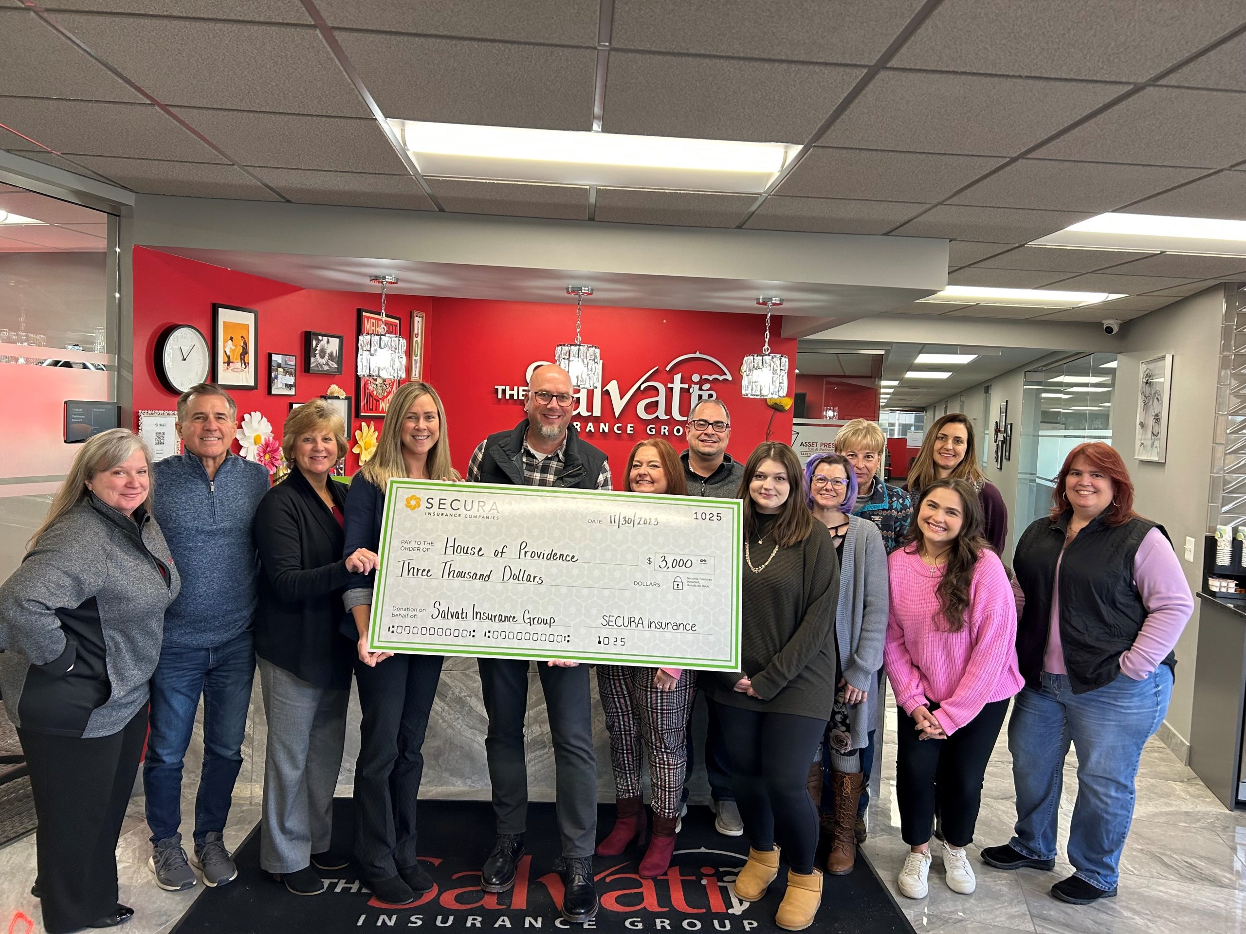 Salvati Insurance in coordination with SECURA Give Back campaign makes a $3,000 donation to House of Providence